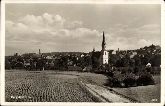 Ak Burgstädt in Sachsen, Panorama, Kirchturm