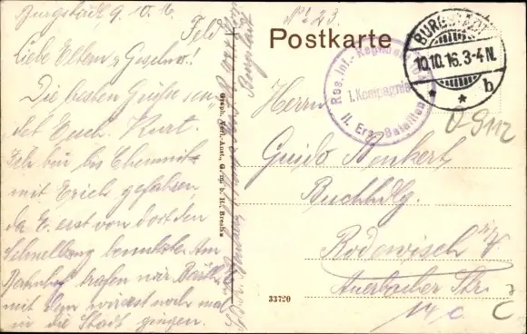 Zustand, siehe Scan, gelaufen, 1916 - ca 14 cm X 9 cm
