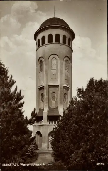 Ak Burgstädt in Sachsen, Taurastein, Wasserturm, Aussichtsturm