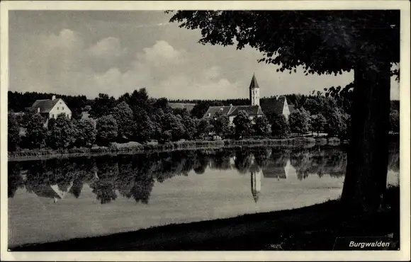 Ak Burgwalden Bobingen in Schwaben, Blick auf den Ort, Kirche, Flusspartie