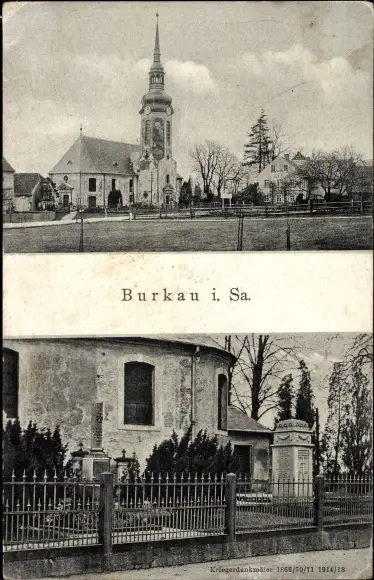 Ak Burkau in Sachsen, Kirche, Kriegerdenkmal