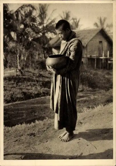 Ak Burma, Buddhistischer Mönch, Almosenschale