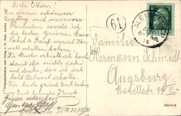 Zustand, siehe Scan, gelaufen, 1914 - ca 14 cm X 9 cm