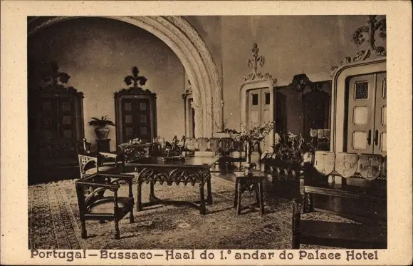 Ak Bussaco Buçaco Portugal, Haal do 1. andar do Palace Hotel