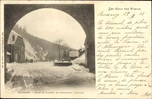 Ak Bussang Vosges, Dans le Tunnel en Regardant l'Alsace
