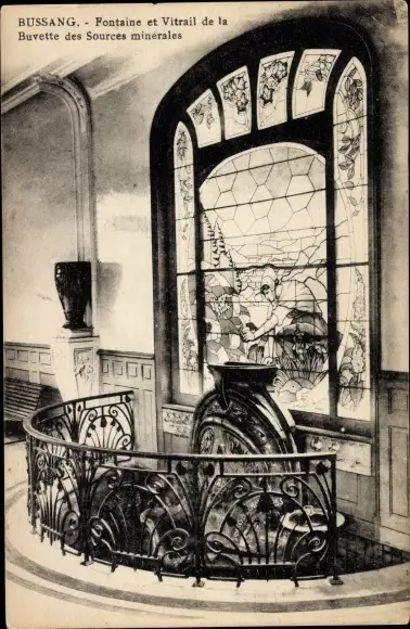 Ak Bussang Vosges, Fontaine et Vitrail de la Buvette des Sources minerales