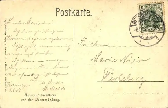 Ak Butjadinge, Leuchtturm Roter Sand, Wesermündung