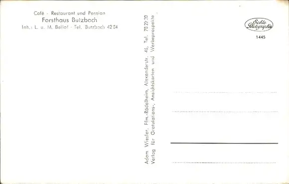 Ak Butzbach im Taunus Hessen, Cafe Restaurant Pension Forsthaus Butzbach