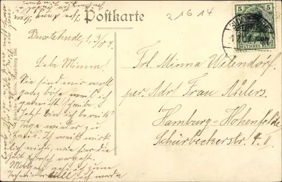Zustand, siehe Scan, gelaufen, 1907 - ca 14 cm X 9 cm