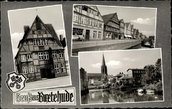 Ak Buxtehude in Niedersachsen, Wappen, Kirche, Fachwerkhäuser
