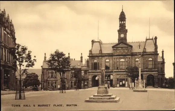 Ak Buxton Derbyshire England, Town Hall and Market Place