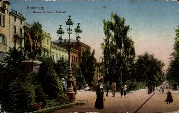 Ak Bydgoszcz Bromberg Westpreußen, Kaiser Wilhelm Denkmal, Straßenpartie