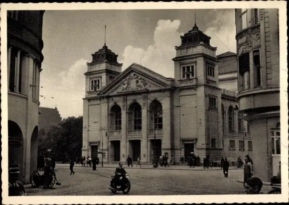 Ak Bydgoszcz Bromberg Westpreußen, Stadttheater, Motorradfahrer
