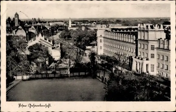Ak Bydgoszcz Bromberg Westpreußen, Theaterplatz mit Straßenbahn