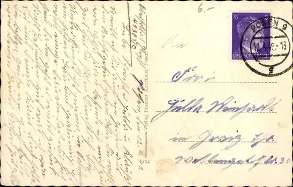 Zustand, siehe Scan, gelaufen, 1942 - ca 14 cm X 9 cm
