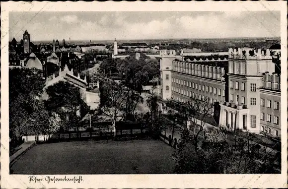 Ak Bydgoszcz Bromberg Westpreußen, Theaterplatz mit Straßenbahn