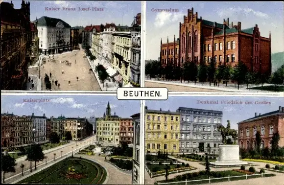 Ak Bytom Beuthen Oberschlesien, Gymnasium, Denkmal, Kaiserplatz