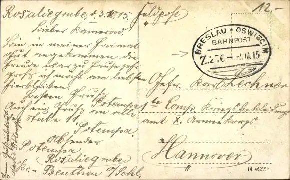 Zustand, siehe Scan, gelaufen, 1915 - ca 14 cm X 9 cm