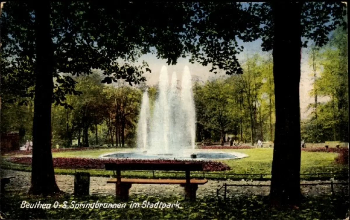 Ak Bytom Beuthen Oberschlesien, Springbrunnen im Stadtpark