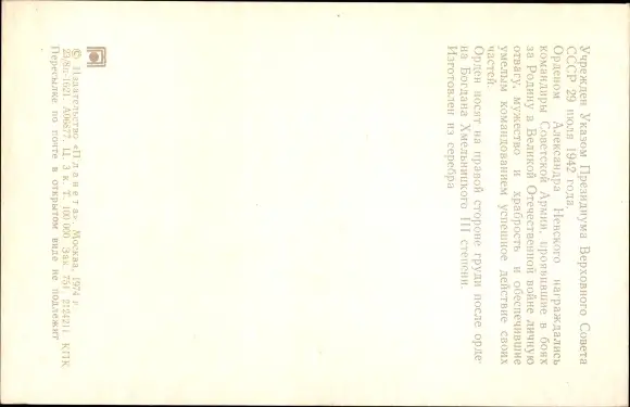 Ak CCCP, UdSSR, Russischer Orden, Alexander Nevsky Orden
