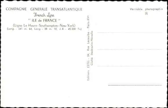 Ak CGT Dampfer Ile de France, Compagnie Générale Transatlantique, French Line