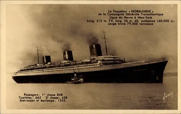 Ak CGT Dampfer Normandie, Paquebot
