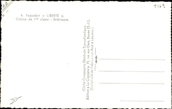 Ak CGT French Line, Kabine 1. Klasse, Dampfer Liberté
