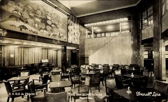 Ak CGT French Line, S.S. Ile de France, The Smoking Room, First Class