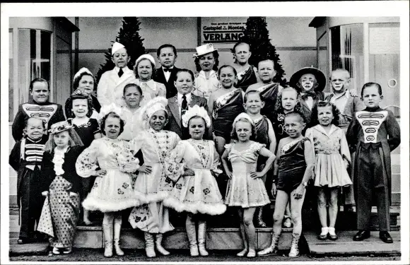 Ak C.H. Schäfers Zirkus Stadt Liliput, Kostüme, Gruppenfoto, Liliputaner