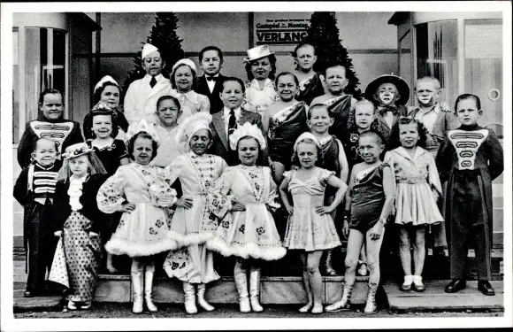 Ak C.H. Schäfers Zirkus Stadt Liliput, Kostüme, Gruppenfoto, Liliputaner