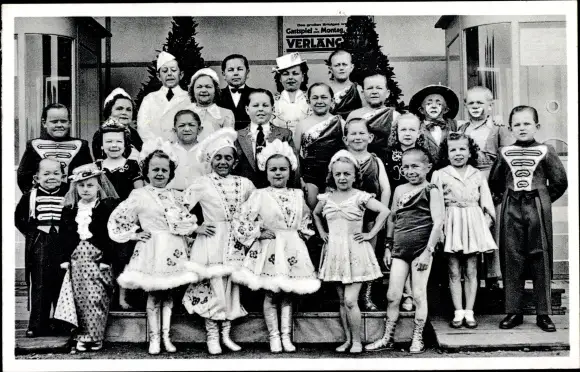 Ak C.H. Schäfers Zirkus Stadt Liliput, Kostüme, Gruppenfoto, Liliputaner