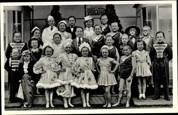 Ak C.H. Schäfers Zirkus Stadt Liliput, Kostüme, Gruppenfoto, Liliputaner