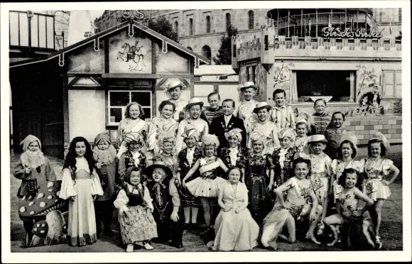 Ak C.H. Schäfers Zirkus Stadt Liliput, Liliputaner, München Solln, Memlingstraße 11