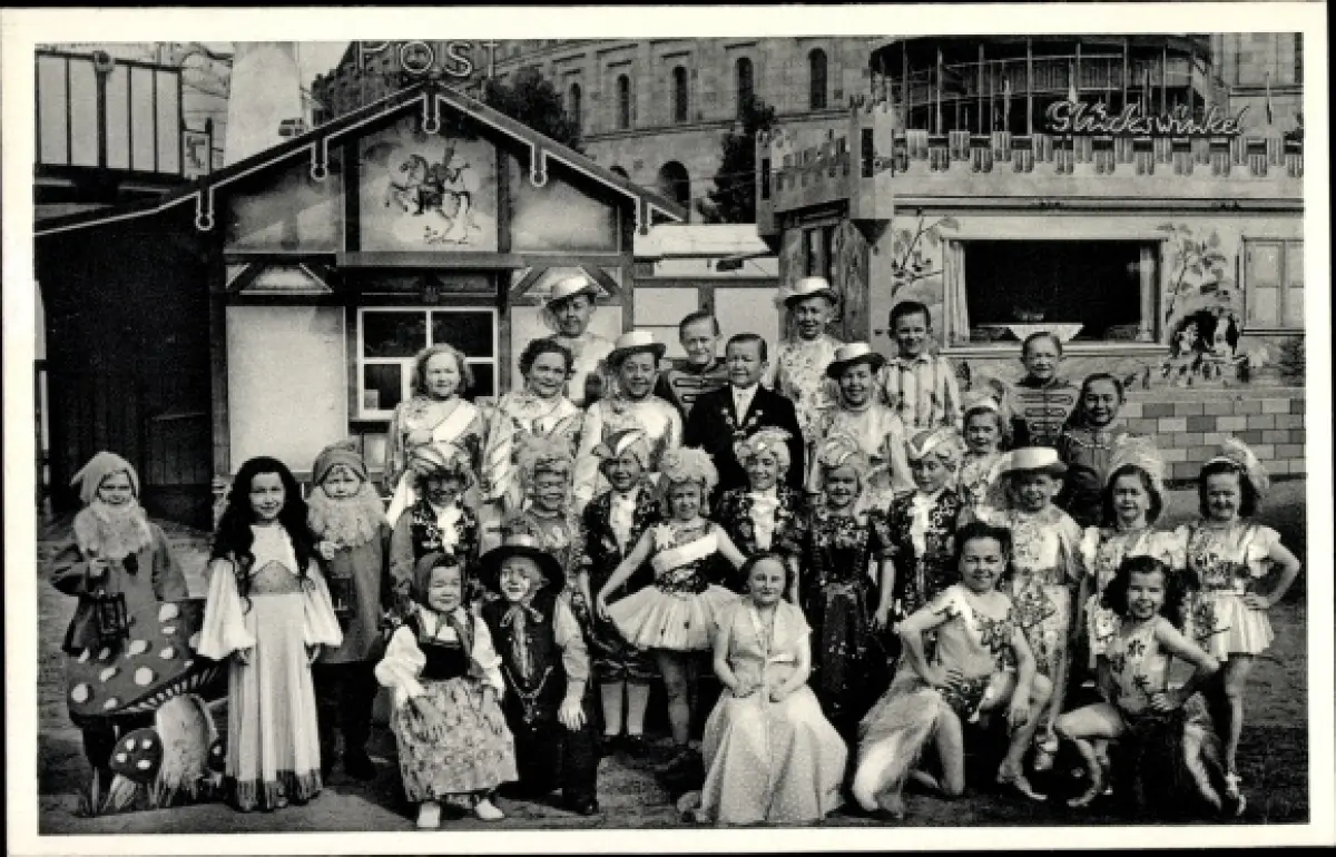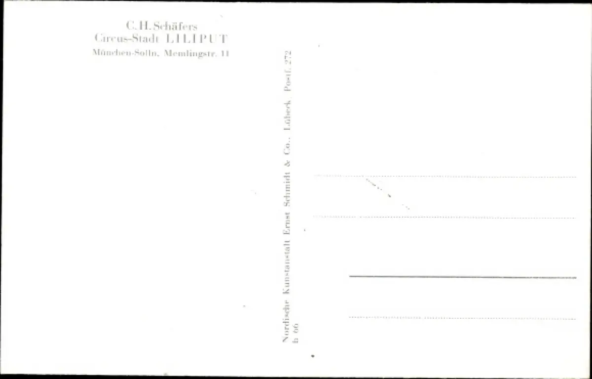 Ak C.H. Schäfers Zirkus Stadt Liliput, Liliputaner, München Solln, Memlingstraße 11