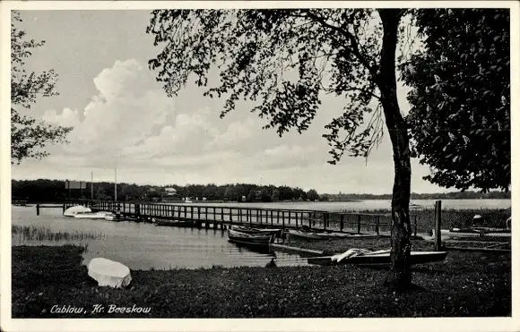 Ak Cablow Kr. Beeskow, Blick zum Seesteg, Boote