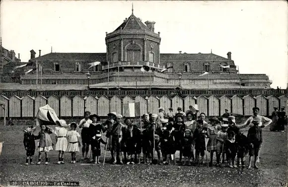 Ak Cabourg Calvados, Casino, Kindergruppe am Strand