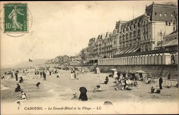 Ak Cabourg Calvados, Grand Hotel, Strand