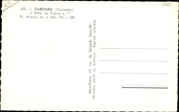 Ak Cabourg Calvados, Hotel de France, 91, Avenue de la Mer