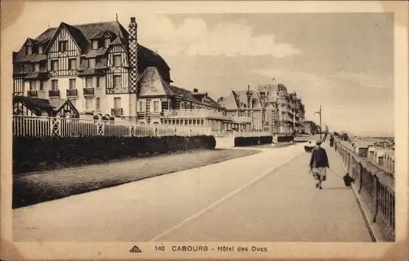 Ak Cabourg Calvados, Hôtel des Ducs, Strandpromenade