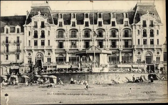 Ak Cabourg Calvados, La Plage devant le Grand Hotel