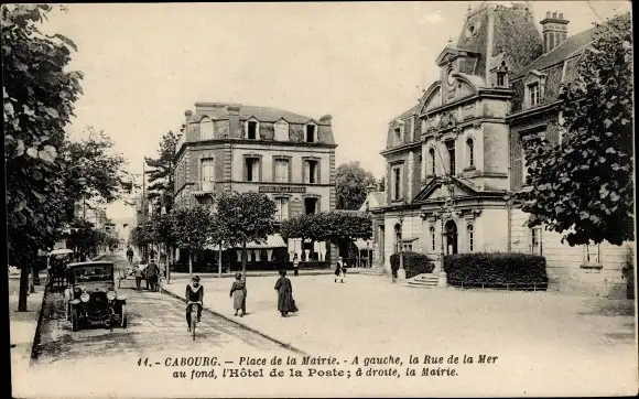 Ak Cabourg Calvados, Place de la Mairie, Rue de la Mer, Automobil