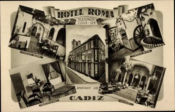 Ak Cádiz Andalusien Spanien, Hotel Roma, Tipico Bar, Habitacion