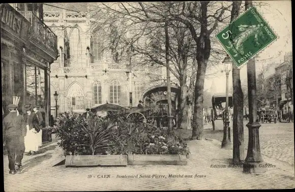 Ak Caen Calvados, Boulevard Saint Pierre, Marche aux fleurs