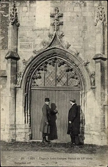 Ak Caen Calvados, Chapelle Saint Georges, Soldat francais