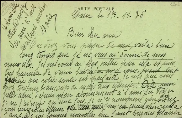 ungelaufen, datiert 1936, Rückseite beschrieben, sehr guter Zustand