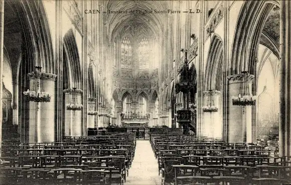 Ak Caen Calvados, Kirche St. Pierre, Innenansicht