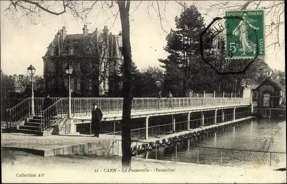 Ak Caen Calvados, La Passerelle, Vaucelles