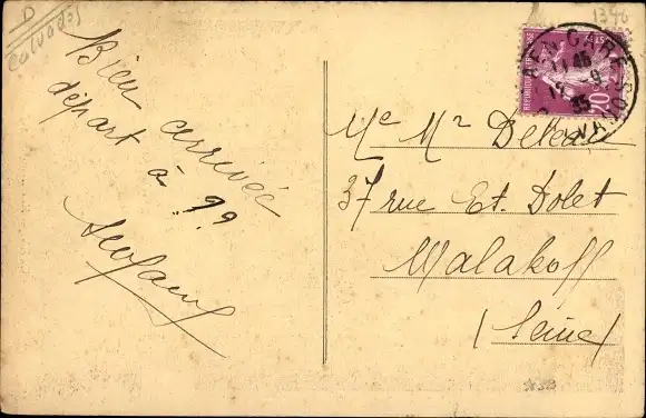 gelaufen 1935, Eckknick rechts unten, fleckig, sonst guter Zustand