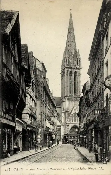Ak Caen Calvados, Rue Montoir, Poissonnerie, L'Eglise Saint-Pierre