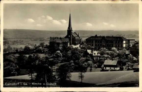 Ak Cainsdorf Zwickau in Sachsen, Kirche und Schule